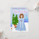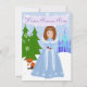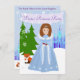 Una invitación a la fiesta de cumpleaños de la princesa de invierno con una hermosa escena de nieve a ambos lados, un pequeño chica de pelo marrón bonito y mucho espacio para los detalles fiestas en la parte trasera. Arte vectorial original de la Menagerie de Lechuza Nocturna, 2014.