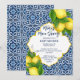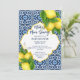 Baldosas azules y limón Amalfi Positano estilo mediterráneo modelo de invitación a la ducha de bebé estilo Marruecos borde tallado, principal apretón de mamá ducha género neutro.