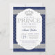 Invitación El Principito Real Baby Shower azul y plateado