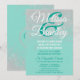 Falso purpurina blanco brillante impreso atractivo, elegante, y elegante en un fondo verde verde azulado, casando invitaciones. Este diseño clásico y sofisticado es perfecto para los pares que se casan de moda y elegantes. Personalice con su propio mensaje en el frente así como una inicial modificada para requisitos particulares del monograma en la parte posterior. Todo el diseño de la impresión de la foto.