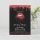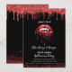 Invitación editable a la fiesta de adultos vampiros de Halloween. El diseño presenta labios rojos goteando con sangre y colmillos de vampiros sobre un fondo negro! El glamoroso purpurina rojo goteando, purpurina rojo y chispas enmarcan la tarjeta. Personalice el texto y cambie el estilo de fuente y el color a la medida. El purpurina no es un purpurina "real" sino un efecto impreso.