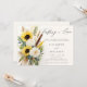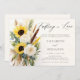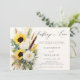 Un espléndido ramo de flores secas, girasoles, rosas, follaje seco y pampas, pintado con una delicada y romántica acuarela, con tonos marrones, amarillos, verdes y blancos, crean un elegante marco floral para la invitación a la fiesta de compromiso de esta pareja de otoño con un tema de amor, que también incluye caligrafía moderna. El diseño es una mezcla atemporal de sofisticación clásica y el encanto alegre de las flores, perfecto para el romántico moderno. Ideal para una excursión en otoño, esta invitación se adapta tanto a la elegante novia y al novio bohemio como a los que planean una fiesta en el jardín, una celebración en el patio trasero o un evento formal en los jardines de un castillo. Una buena elección para las novias que buscan un toque de naturaleza con elegancia refinada.