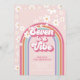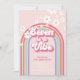 ¡Siete es un Vibe! Invitación de 7 cumpleaños inspirada en el retro con fuentes y colores de estilo de los años 70, arcoiris y mareas.