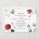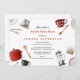 Una invitación a la moda Stock the Kitchen Shower con un fondo blanco y fresco y varios artículos de cocina en rojo, negro y blanco. (Vector creado por macrovector - www.freepik.com).