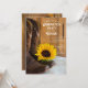 Invite a los invitados a un fiesta casual de granero que rinde homenaje al colegio o graduado universitario cowgirl con la pintoresca Invitación del Partido de Graduación Occidental de los Cowboy y Sunflower. Personalizar con los detalles específicos de su evento. Este rústico fiesta de rancho personalizado de moda con temática de rancho cuenta con una fotografía de granja de un par de botas de vaquero de cuero marrón y flor de girasol amarillo con un fondo de madera de granero. Idea perfecta para un evento informal de celebración de fiesta de granero. Disponible como invitación impresa para correo o como descarga digital para compartirla digitalmente.