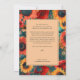 La invitación nupcial de la colección "Sunflower and Poppy Reverie" irradia un encanto vibrante y una elegancia clásica, combinando sin problemas la belleza animada de los girasoles y los amapolas con una paleta de colores sofisticada. La invitación presenta un diseño vívido con girasoles amarillos y adornos rojos entrelazados con hojas verde y turquesa, creando un entorno exuberante y acogedor. En la parte superior de la invitación, la elegante leyenda dice: "Mientras plantamos las semillas de nuestro futuro juntos, los invitamos a compartir la cosecha del amor que ha crecido entre" en un refinado texto verde botella, complementando perfectamente el rico esquema de colores de las obras de arte. Justo debajo, los nombres de la pareja se muestran de forma destacada en un guión elegante y ornamentado que hace eco de la belleza del diseño floral. Los detalles de la ceremonia, incluyendo la fecha, hora y lugar de celebración, se presentan en un elegante tipo de letra verde botella que mejora la sofisticación general de la invitación al mismo tiempo que se armoniza con las vívidas obras de arte. La parte trasera de la invitación refleja el vibrante diseño floral de la parte delantera, con girasoles y adornos que siguen enmarcando la distribución. El espacio central de la parte trasera es amplio para el texto personalizado, como detalles adicionales, opciones de transporte, sugerencias de alojamiento o una nota personal de la pareja. Esta área de texto está bordeada por el diseño floral, asegurando una presentación coherente y elegante, permitiendo al mismo tiempo que se transmita claramente información importante. El diseño de esta invitación a la boda integra perfectamente el vibrante arte floral con el refinado texto verde botella, creando una pieza memorable y visualmente atractiva que marca perfectamente el tono para el día especial de la pareja. Para completar su suite de artículos de papelería para bodas, ofrecemos una presentación coherente y encantadora durante toda la celebración.