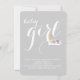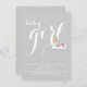 Una niña durmiente ducha de bebé texto elegante invitación mínima que incluye el texto niña de color blanco con fondo gris claro y una niña con ropa rosa con un poco de azul durmiendo en una nube y la luna creciente amarilla. Este moderno y elegante diseño minimalista personalizado de plantilla es completamente personalizable. Puede cambiar el color de fondo. Algunos elementos de Trina Clark.