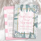 Esta invitación de fin de semana de soltero "El verano me casé", de estilo retro y moda, presenta exuberantes hojas tropicales con un marco de oro falso/falso en un fondo de rayas rosas claras. En el reverso aparece un itinerario. Personalízalo para tus necesidades. Puedes encontrar productos coincidentes en mi tienda.