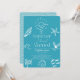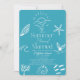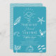 La invitación a la ducha de moda de la moda costera "El verano me he casado" tiene un fondo azul turquesa con el sol dibujado a mano sobre olas, conchas, una estrella de mar, coral, una escuela de pescado, una cola de ballena—todo en blanco. En el reverso, un fondo azul turquesa claro con olas. Personalízalo para tus necesidades. Puedes encontrar productos coincidentes en mi tienda.