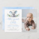 Elefante floral azul niño de cacahuete primera invitación a la foto de cumpleaños.