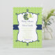 Invitación de Baby Shower del elefante del lunar del azul y de la cal con el detalle horneado a la crema y con pan rallado opcional del borde. Disponible en otros colores con el elefante de coordinación. Conveniente para las fiestas de bienvenida al bebé, sorbo y vea, y los cumpleaños de los niños.
