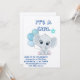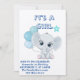 Invitación de primer cumpleaños con elefante lindo, globos azules, primer cumpleaños de una niña. Personaliza fácilmente el texto.