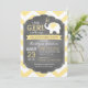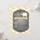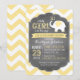 Fondo de impresión de chevron amarillo y blanco con elefante blanco que sopla corazones chica tarjeta de invitación a la ducha bebé.