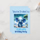 Una escena encantadora con un adorable elefante azul brillante bajo un cielo estrellado deslumbrante para una invitación de cumpleaños soñadora y fascinante. Personaliza con el nombre de tu hijo.