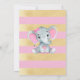 Niña elefante dorada rosada moderna que conoce a mamá mejor Baby Shower con fondo de rayas doradas y rosas y texto de personalizable.