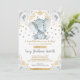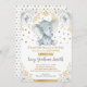 Invitación Elefante Neutral Baby Shower Gold Floral gris