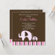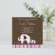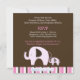 Dottie Dottie Dotant diseño de tiras elefante dulce mami and Baby Pink con un fondo de chocolate oscuro y un fondo de rayas de moda. Esta invitación es a todo color en la parte delantera y en la parte trasera, lo que deja mucho espacio para escribir. Esta es una súper linda invitación temática de un elefante único que a mamá le encantará entregar y a los invitados les encantará recibir! ¡Perfecto para cualquier bebé con ducha! NOTA: Las invitaciones cuadradas tienen que ser ordenadas a mano en la oficina de correos, por lo tanto cuestan más por correo! Por favor, compruebe con su oficina de correos las tarifas en franqueo cuadrado. También disponible en tamaños 5x7: