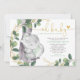 ¡OH BEBÉ! ¡Un dulce cacahuete está en camino! Impresiona a tus huéspedes con esta hermosa invitación a bañarse en una ducha neutra de género, con un ilustracion acuarela de un adorable elefante bebé rodeado de exuberante vegetación en verde y oro. Utilice los campos de plantilla para agregar sus detalles. Si desea cambiar el estilo de letra, color o ubicación del texto, simplemente haga clic en el botón "Personalizar más adelante".