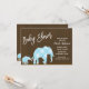 Invitación Elefantes Azules Brown Moderno Baby Shower