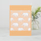 Toda una serie de elefantes blancos sobre un fondo colorido. Este diseño parece realmente efectivo en estas invitaciones