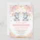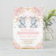 Invitación suave Rubor Pink & Gold Twin Elephant Tema de Baby Shower