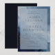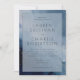 Esta elegante invitación de boda presenta un fondo sereno jaspeado en azules y grises suaves, acentuado con delicados giros dorados, creando una atmósfera soñadora y sofisticada. La disposición es equilibrada y centrada, con amplios márgenes que enmarcan la tipografía limpia y con serifas que resaltan los nombres y detalles del evento. Su estilo moderno pero atemporal la hace perfecta para parejas que buscan una estética tranquila y elegante para celebrar su día especial.