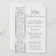 Magnífica invitación al 25º aniversario Boda gris plateado y blanco con sutil fondo de rayas verticales blancas en el frente de la invitación y elegante y detallado panel lateral de encaje floral plateado. La parte posterior de la tarjeta tiene un patrón de encaje plateado a juego con el blanco. Personalizar la invitación con su información. La tarjeta también está disponible en versión rectangular en mi tienda.