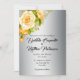 Presentamos nuestra invitación a la boda "Silver Elegance: Rosas dorados", encarnación de la sofisticación atemporal y el floreciente romance. Esta exquisita invitación combina perfectamente la regalidad de la plata con la calidez de los rosas dorados, creando una impresionante sinfonía visual. El fondo plateado brillante sirve de lienzo para un arreglo artístico de rosas amarillas vibrantes adornando con gracia la esquina superior. El contraste entre el fresco matiz metálico y el vibrante estallido de las flores de oro simboliza la unión de dos almas en una celebración de amor y alegría. Cada detalle está minuciosamente diseñado para reflejar la elegancia de tu día especial. El sheen plateado exuda una sensación de refinamiento, mientras que las rosas amarillas transmiten sentimientos de felicidad y nuevos comienzos. El delicado entrelazamiento de estos elementos hace de "Silver Elegance: Rosas dorados Boda" una invitación que no sólo anuncia su unión sino que también sirve como un preciado conservador. Esta encantadora invitación plateada y amarilla no es solamente una invitación; es una obra de arte que prepara el terreno para una celebración que será recordada por toda una vida.