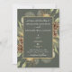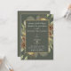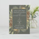 Limpia y decorativa, esta rústica invitación a la boda se caracteriza por una agradable masa de pino con pinos enmarcados en un elegante fondo verde musgo con guarnecido dorado
