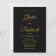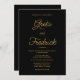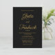 Esta elegante invitación a la boda es eterna, su diseño es sencillo y minimalista. El diseño presenta detalles de la invitación a la boda de personalizable en la elegante tipografía de escritura dorada; sobre un fondo negro siempre elegante y sofisticado.