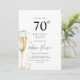 This is a modern and elegant 70th Birthday party invitation. Using a minimalist design of a flute of champagne, easily edit the text as required using the provided template and celebrate this milestone birthday in elegant style.