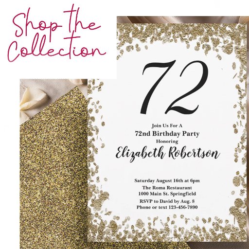 Invitación Elegant 72nd Birthday Invitation With Gold Sequins