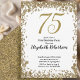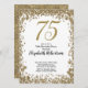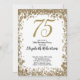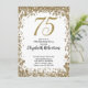 Invitación Elegant 75th Birthday White and Gold Sequin