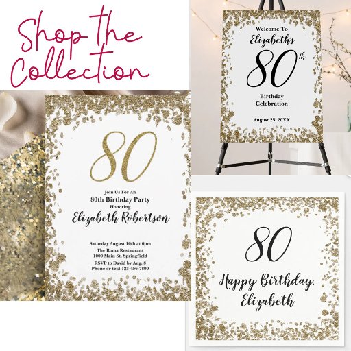 80th birthday gold sequins party suppliesDiseñado por Kara Buntin