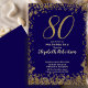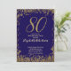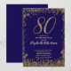 Invitación Elegant 80th Blue Birthday Invitation Gold Sequin