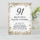 Invitación Elegant 91st Birthday Invitation Black and Gold