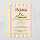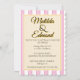.: This minimalist design in soft yellow and mellow pink is a perfect, elegant and charming way to invite your guests to your big day. Design features script and modern typography and beautiful scalloped edges in a sea of elegant stripes.