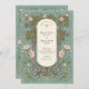 Announce your special day with this enchanting wedding invitation, beautifully designed in the romantic Art Nouveau style. This exquisite card features a delicate watercolor frame of soft peach and pink lilies, with graceful, swirling green vines creating a symmetrical and artistic border. Your personalized wedding details are elegantly displayed within a classic oval frame, detailed with faux gold accents for a touch of timeless luxury. Perfect for a garden party, a vintage-themed celebration, or for couples who appreciate classic art, this invitation sets a truly graceful and memorable tone.