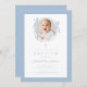 Elegant Baby Blue Bow Photo Baptism Invitation. For best results upload a square image of the baby.