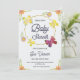 Elegant baby shower invitation featuring floral design with orange and yellow flowers. Details include event for Sue Yaneer, on January 15th in Anchorage.