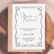 Graceful and timeless, this elegant black and white wedding invitation features flowing script names framed by a delicate ornamental border. The refined swirl details create a soft, romantic frame that draws the eye inward, beautifully highlighting your names and wedding date. The balanced layout blends classic charm with modern simplicity for a look that feels both sophisticated and enduring.