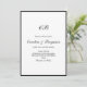 A timeless black and white wedding invitation with elegant monogram and formal serif script. The crisp black border adds classic structure, perfect for black-tie or formal weddings. Personalize with your details for a sophisticated first impression.