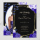 This elegant blue, gold, and black 18th birthday debut invitation has blue roses and blue butterflies with a personalizable template to create your own message. Add your photo on the back. The invitation template is customizable in the listing editor and is also available as a digital download that's printable after you personalize it.