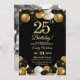 Invitación Elegant Black Gold Glitter 25th Birthday Photo