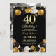 Invitación Elegant Black Gold Glitter 40th Birthday Photo