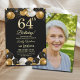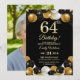 Invitación Elegant Black Gold Glitter 64th Birthday Photo
