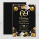 Invitación Elegant Black Gold Glitter 69th Birthday Party