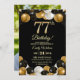 Invitación Elegant Black Gold Glitter 77th Birthday Photo
