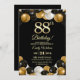 Invitación Elegant Black Gold Glitter 88th Birthday