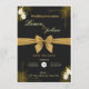 A stunning black and gold luxury wedding invitation featuring elegant floral accents, gold ribbon details, and a modern formal layout. Fully customizable for names, dates, and event details.